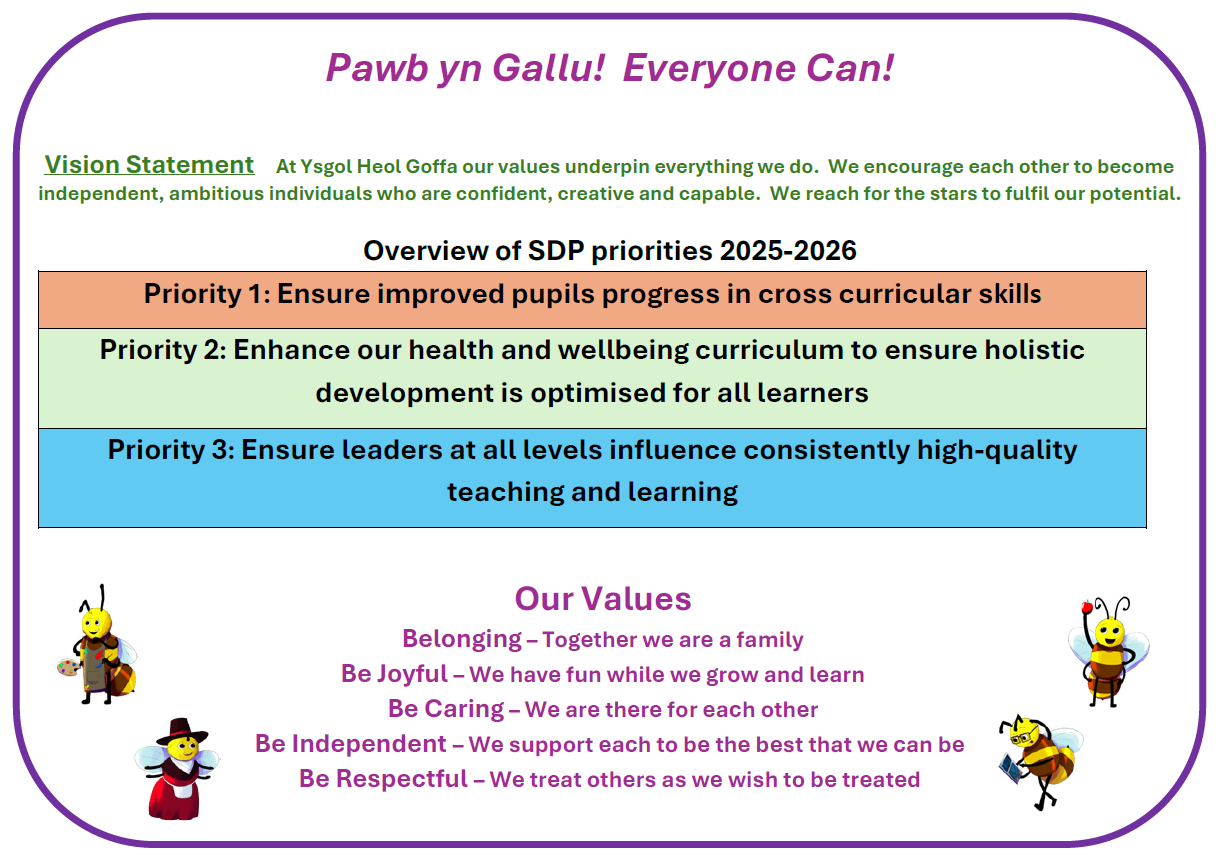 Our school development priorities are decided through a range of processes that involve parents, staff and pupils. These are our priorities for this year...